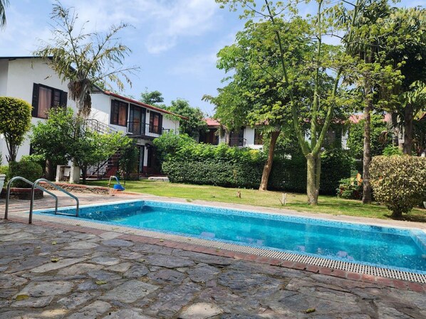 Travelers enjoy leisurely swims in four outdoor pools and stay connected with in-room WiFi while helpful staff ensure a seamless getaway at Chopra Farms