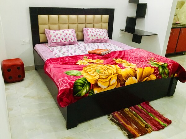 Escape to this beautifully designed entire RK in Gurgaon, located just 1.5 km from Huda City Center metro station and nearby malls. You can cook up a storm in the fully functional kitchen with induction cooktop, stay cool with air-conditioning, and relax with WiFi and TV.