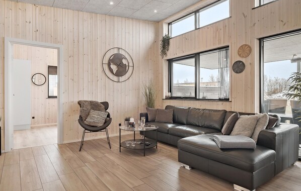 Escape your hectic everyday life and find the perfect place to relax in this beautiful vacation home. The stylish furnishings, tasteful decoration and light-flooded living atmosphere create the ideal conditions for you to feel at home here. Prepare meals together at the cooking island and enjoy them on the covered outdoor terrace. There you will also find your personal wellness area with a barrel sauna and whirlpool. There is another whirlpool bath in the bathroom. Relax your muscles and listen to the laughter of your children in the garden while you try out the numerous outdoor games.