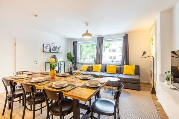 In the heart of Hamburg's vibrant Schanzenviertel, Homaris apartments offers modern design and a central location. This beautifully renovated apartment features a fully-equipped kitchen, two bathrooms, and ample living space with flat-screen TV and cozy sofa elements.