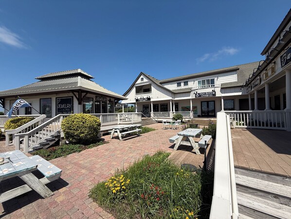 Located in the heart of Hatteras Island, Stowe Quarters offers a unique vacation experience. Residing above a small, upscale shopping plaza named Stowe on 12, Stowe Quarters is a three-bedroom condo that has access to shopping, easy beach access, and eateries all at very close proximity! Guests can choose from a King En Suite, and a King Bedroom which shares a full bathroom with a Pyramid Bunk bedroom. There is a living area, a kitchen, and a dining room table. In this open space condo, fun can be had with the pool table and shuffleboard.