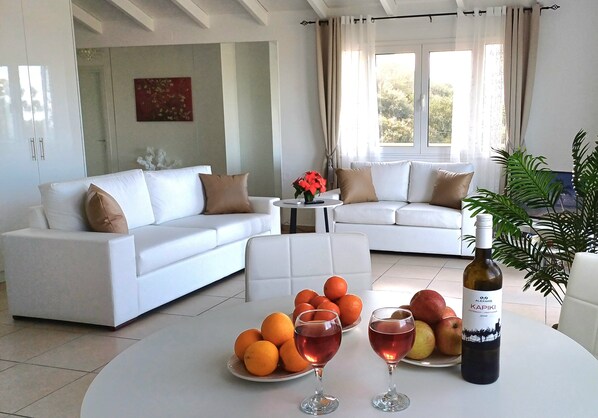 The apartment is surrounded by a balcony with a stunning sea view where you can enjoy your morning coffee.