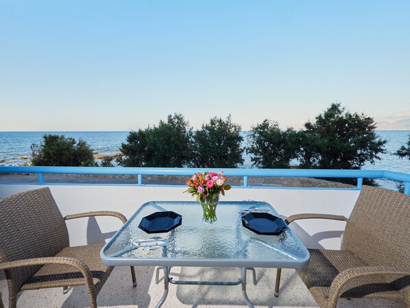 In Hersonissos, this modern waterfront apartment offers a serene retreat. Enjoy seaviews in all directions from the spacious living room and kitchen or explore various small beaches nearby.