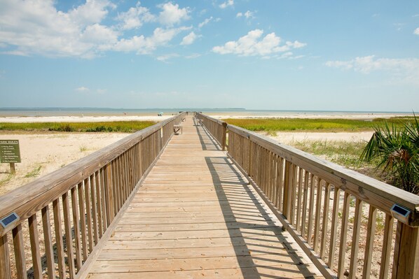 Nestled on the beach, this Mid Island condo building is just steps away from Mitchelville Freedom Park and Folly Field Beach. Fish Haul Beach Park and Fort Howell are also within 15 minutes.