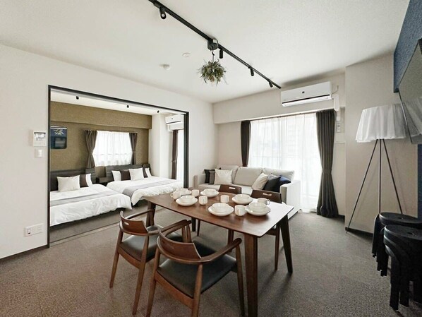 This 2-bedroom apartment accommodates up to 10 guests comfortably. Located near Peace Park and Hondori District, it’s surrounded by convenience stores and restaurants. Amenities meet hotel standards with clean linens, towels, toiletries, and a fully equipped kitchen. A washing machine with detergent is provided, along with a separate bath and toilet. Enjoy city views from the balcony and stay connected with available WiFi. Perfect for exploring Hiroshima with everything within reach.