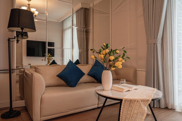 Deluxe Apartment, 1 King Bed with Sofa bed, Balcony, City View