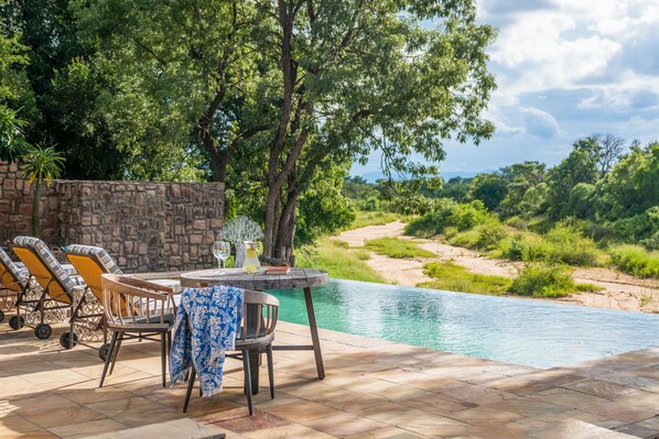 Shumbalala Game Lodge offers a tranquil luxury experience in a provincial park. Guests can lounge by the outdoor pool, browse on-site shopping, or visit the library. Practical laundry facilities add convenience, and the staff is consistently praised for their attentive service.