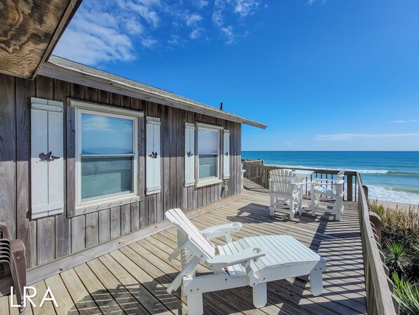This four-bedroom, three-bathroom home is more than just a place to stay—it's a haven for beach lovers! The open-concept living and dining area is flooded with sunlight from large windows that offer unbeatable ocean views. It's the perfect spot to relax after a day of sandcastle building or wave riding. Step out onto the sprawling deck, where the sea breeze greets you, or take your private path straight to the surf—no long treks with beach gear here!