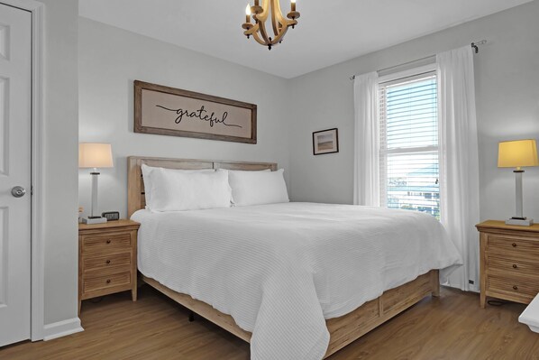Perfect place to stay in Surf City! We are a family of 3, and it was a great fit. My daughter loved the cozy bunk beds and the king bed was very clean and comfortable! Views of the ocean and intracoastal. It was so nice to have beach chairs, towels, and some sand toys to bring to the beach. We enjoyed our stay and loved being able to walk to restaurants, shops, and the beach! Highly recommend!