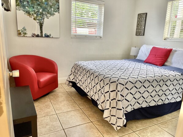 The beds, couch, and dining chairs were extremely comfortable which is of major importance to me and my adult guests. Everything was clean, but the rooms would benefit from some new paint. Our small issue with the TV was resolved very quickly. All the basics are provided. My extended stay involved buying plastic wrap, foil, a drain pad for washed dishes, and storage containers. I have found this is the norm for long stays like mine.