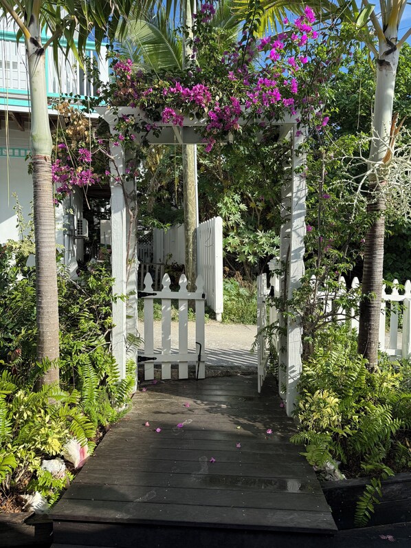 This adorable vintage cottage is designed with high-end furniture and features throughout. Great efforts have been made to provide modern conveniences while respecting the original character and charm. Guests will love the dipping pool nestled in the lush backyard setting. The home is located in a quiet residential neighborhood on the settlement’s north side. Just a short 1-2 blocks stroll from the beach, harbour, shopping, restaurant, bike rentals, and incredible views of the landmark lighthouse.