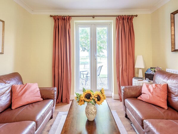 Living room: 28" Freeview TV, DAB Radio, DVD Player, Electric Woodburner, French Doors Leading To Garden