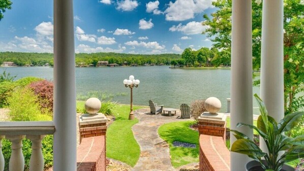 The third bedroom has a Queen size bed and a dedicated office area. Just outside this room, in the hall, you'll find a 3/4 bathroom. There is plenty of room for everyone and a view you will get lost in! Bring your boat or rent one and use the large boat dock. Go for a swim, fish to your heart's content, or relax and enjoy the lake from the beautiful back patio.