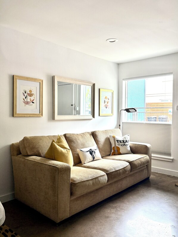 Very Comfy Sofa to relax and watch TV. You can also have an extra guest sleep on sofa please add extra guest to reservation for an extra fee,