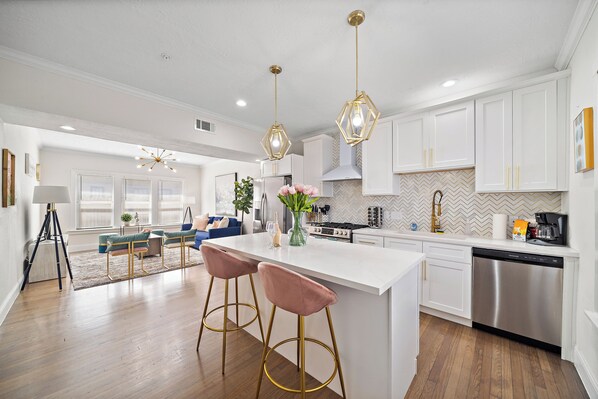 Located in the heart of the museum district, this luxury apartment offers a stylish experience. Beautifully remodeled with modern finishes, quartz countertops, and custom fixtures & hardware. Enjoy spacious living with two king size beds and sofa bed plus dedicated office space.