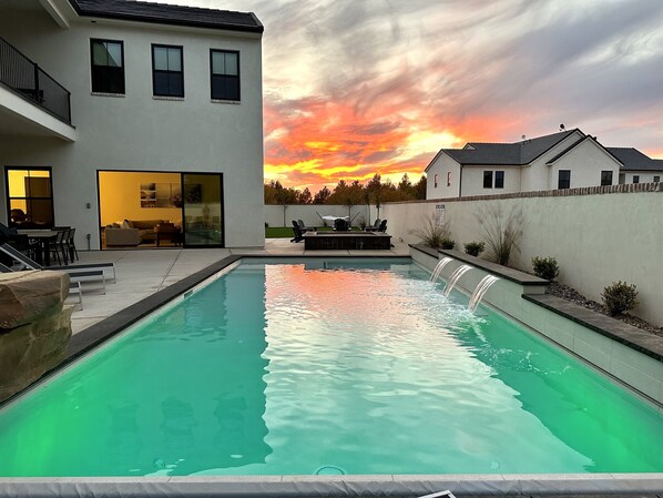 Outdoor pool, a heated pool - Black Ridge Villa near Sand Hollow & Zions. Sleeps 32. Private pool & hot tub.  (Hurricane)