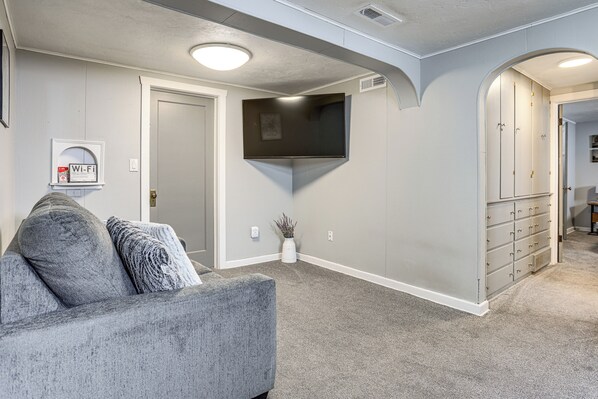 ADDITIONAL INFORMATION - This single-story unit is located on the lower level of the home and requires stairs for access - A long-term tenant lives on-site in the upstairs unit; they may be present during your stay