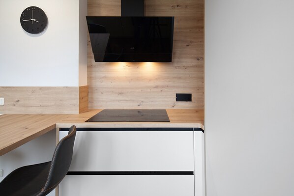 There are butchers, bakers and supermarkets in the immediate vicinity of the ultra-modern furnished apartment.