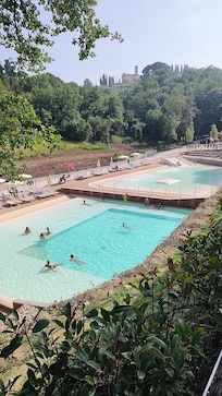 Recreational amenities at the campsite include a seasonal outdoor pool.