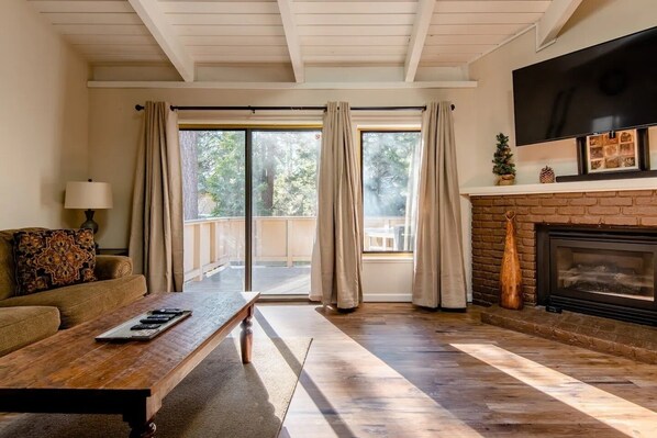 Our condo overlooks forest land on one side and a lawn on the other. Lots of exploring and play space for the kids around the condo.