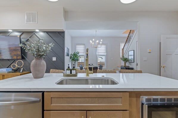 Designed for the Way Groups Actually Travel Gather comfortably. Rest privately. - Open-concept living space with room for everyone - 65” Smart TV for game nights or streaming together - Fully equipped kitchen for group meals - Drip coffee maker, K cup single serve, and French press for easy mornings