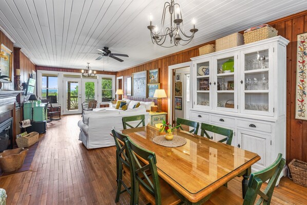 Off the back side of the living area is an enormous screened-in ocean porch where you can enjoy the sounds of the ocean in 4 oversized rockers or at the teak dining table for 6. Off the porch is an unscreened area and steps to go down to the beach path. PRIVATE BEACH ACCESS right from the house!