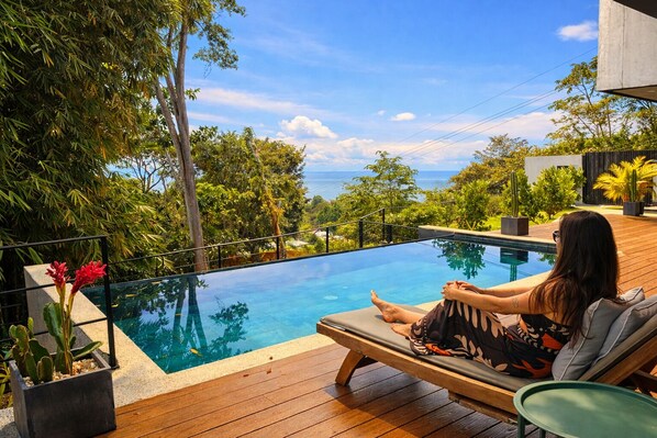 Private 4-bedroom ocean-view villa with infinity pool, built in 2023 and located in quiet Playa Hermosa, within walking distance to the beach, restaurants, and surf breaks.