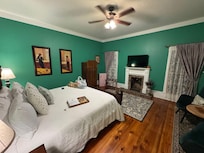 The Steamboat Inn blends historic charm with modern comforts. Guests enjoy a full breakfast before exploring. The property offers a firepit for evening relaxation and an outdoor entertainment area with WiFi for unwinding.