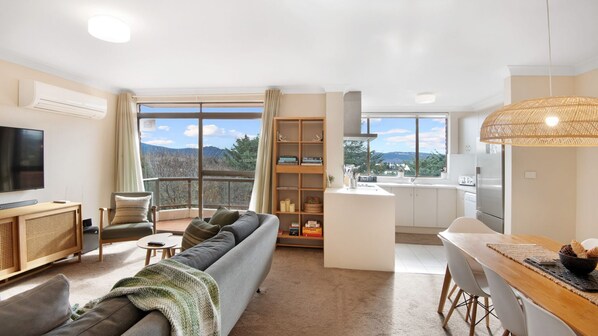 Lovely well appointed apartment with tasteful decor. Perfect location. A short walk to Nuggets Crossing, just across the road from the lake and easy to get onto the path for a bike ride. Best part was you could lock your bikes up downstairs in the Boot & Bike room. Would highly recommend for families.
