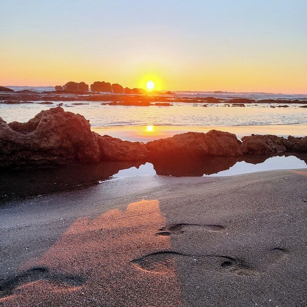 Nestled among trees, this beachside haven offers a serene escape with ample parking and an unbeatable location just steps from the ocean's waves. With air-conditioned rooms, a spacious ranch perfect for relaxation, bonfires on the beach at night are just one of many highlights.