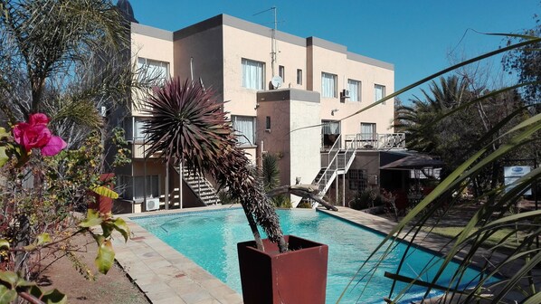Travelers relax by the outdoor pool, wander through the garden's natural beauty, or enjoy delicious meals and drinks at this Midrand retreat