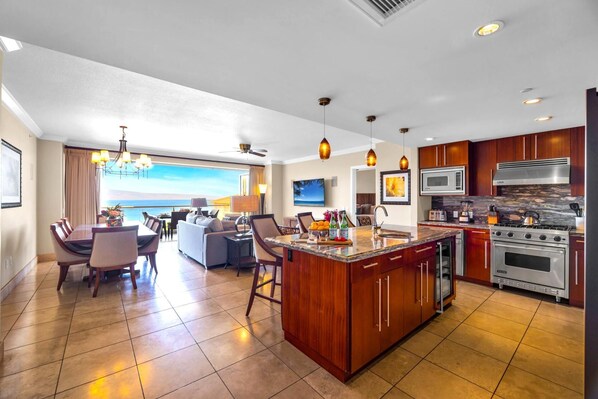 WHAT GUESTS ARE SAYINGGuests love the comfort, flexibility, and convenience this composite provides. Three nearby villas allow everyone personal space while still making it easy to come together for meals, games, or quiet evenings. Families especially appreciate the multiple kitchens, spacious living areas, and comfortable bedroom layouts. As guests of Honua Kai Resort and Spa, you're just moments from tropical pools, lush grounds, Dukes Beach House, and the scenic Kaanapali Beach boardwalk.
