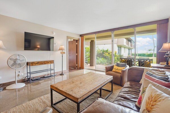 Walk-Out Lanai with Ocean Views: Step onto your private lanai to take in panoramic views of the Pacific Ocean and Kaanapali Golf Course. Dine, lounge, or simply relax as the island's beauty surrounds you.