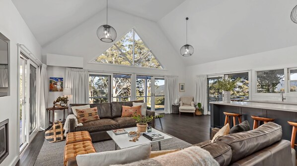 The ground floor spaces flow out onto to decks on 3 sides of the house, or the swimming pool - making Braeside perfect for indoor - outdoor entertaining! Fire up the Heston Blumenthal BBQ under the covered deck and enjoy al fresco dining.
