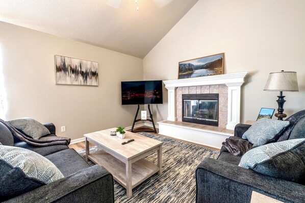 Galway Street Getaway: clean, comfy Smithville home in a quiet neighborhood. 2 bedrooms + bonus basement sleeper sofa, 3 full baths (primary ensuite + basement bath). KC attractions are typically 30–45 min away. provides everything that you need. Guests can connect to free in-room WiFi.