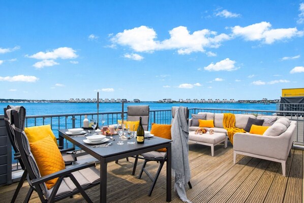 Outdoor dining - Beachfront Baltic Sea vacation apartment "Santiano Lounge" with water view over 2 levels (Olpenitz)