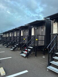 コンテナのような形で内部はどうなってるのか? と以前から色々な場所で見て気になっておりましたが 内部は清潔なビジネスホテルの装いでした。 ベッドも大きく、通路もきちんと確保されており 電子レンジ・冷蔵庫・冷凍庫完備 むしろビジネスホテルのように決まった場所にしか 電子レンジがなく朝にエレベーター乗るってこともありませんし、非常にいい意味で驚きました。 また近くの観光の際は利用させて頂きたいと思っております。
