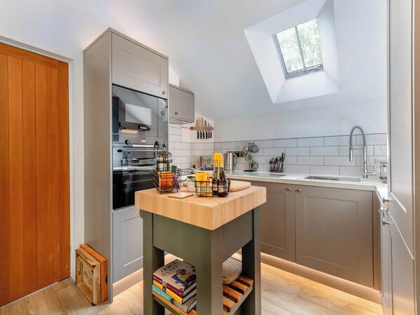 Upstairs, the open-plan living area includes a fully fitted country-style kitchen with high-quality appliances and accessories. The stylish dining area leads to a cosy lounge where you can relax on a comfy sofa or curl up in a deep velvet snuggle chair and rest tired feet upon the footstool. The TV is equipped with entertainment in the way of an Amazon Firestick, allowing you to enjoy your favourite Netflix shows. Outside to the front of the property, a patio area with a bistro table and chairs beckons, making a perfect space for enjoying warm summer days spent soaking in the sunshine. You may even spot moments of wildlife, including lapwings, snipe, curlew, teal, mallards, bats and hares.