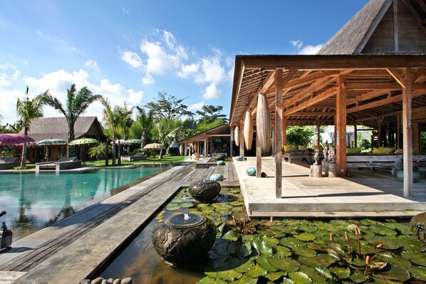 Escape to the serene Villa Kayu, where traditional Javanese Joglos houses meet luxurious comfort. Lounge by the incredible blue pool or unwind in a private open-air bathroom surrounded by lush greenery and majestic stone bathtubs. With a home theater room, billiards table and mini paddy area for fun games with family or friends.