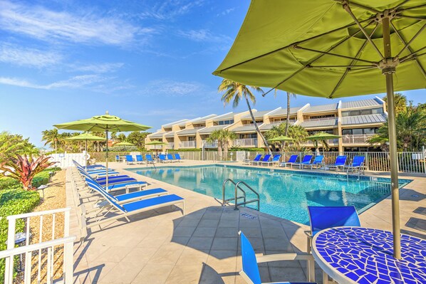 Step into KCP #8, a 2000sqft oceanfront townhouse in an exclusive Key Colony Beach condominium complex. With a small swimming beach, fishing pier, and multiple balconies with open water views to watch the sunset or boat traffic in Vaca Cut.