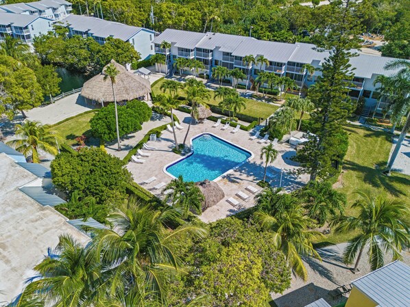 Courageous unit and perfect size for 7 adults! Very comfortable, clean, great water pressure, nice grounds. No beach really but nice pool. Great place to base out of for other activities sick as snorkeling trip and enjoyed other parts of key largo. Definitely would stay again!