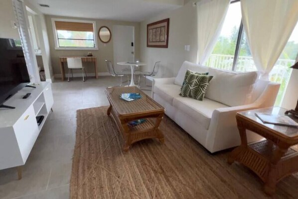 At this unique, third-story apartment overlooking Hidden Key Marina and Manatee Bay, enjoy breathtaking views of sunrises and sunsets from the wrap-around deck. Make some memories at this family-friendly place with access to 3 single kayaks, a double kayak for 2 adults and 1 small child, a row boat as well as laundry facilities.
