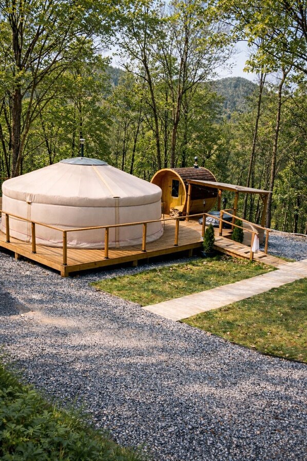 Luxury Nomadic Yurt Romantic Getaway with Sauna and Hot Tub on private 8 acres