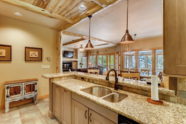 and enjoy home cooked meals during your stay. The kitchen opens up into the