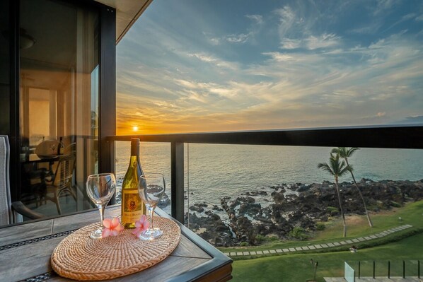The large, private lanai has a bistro table with two padded chairs - a perfect place to enjoy your morning coffee or a romantic oceanfront dinner! Turtles and dolphins can be seen year round, whales in season.