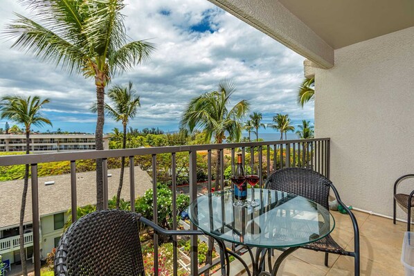 Kihei Akahi C603 located on the top floor of building C at the Kihei Akahi Resort. Enjoy spectacular views of the Pacific Ocean, Haleakala, the island of Kaho'olawe, Molokini Crater, tropical gardens, and glowing sunset skies. This beautiful interior is 655 square ft and the lanai is 68 square feet. The total square footage is 723. This lovely condo is decorated in a tropical island theme and tile floors throughout. Split AC units in the master bedroom and living room, two (2) ceiling fans (1 in the living room & 1 in the bedroom). A FREE secured 5G speed (400 Mb/s) Wi-Fi Internet. Free local cable TV and DVD player. There is no telephone inside the condo!