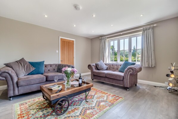 Head inside to find single-storey accommodation offering you every comfort when you return from your trips out across Norfolk. Head into the lounge to light a roaring wood burner on chilly evenings and to find your favourite programme on the Smart TV. Settle back on the plush sofa with your holiday read and congregate in here to make plans for the following day. The contemporary kitchen features everything you will need to help you whip up homecooked feasts for your friends or family using the fresh, local ingredients you have sourced on your excursions. Pull stools up to the breakfast bar to sit down to your meals together. When eyelids begin to droop, lay your head on a plump pillow in one of the two lovely bedrooms here. There is a double bedroom and a king-size, with doors to the garden that can be opened during the warmer months. The cottage also has a family shower room, with a generous shower. Serve breakfast out in the garden on fine mornings. Have BBQs out here too and enjoy soaking in the hot tub. Wander the 18-acre estate at your leisure.