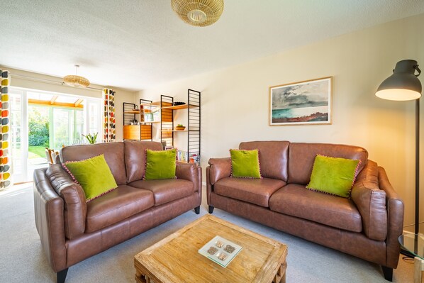 The ground floor open living environment is instantly welcoming, comprising of a well-equipped kitchen, a sitting room, a light and bright dining area, and a delightful conservatory. The stylish contemporary kitchen offers ample worktop space with modern appliances, and overlooks the delightful dining area, which leads to the sitting area. Ample comfortable seating is perfect for nestling into after a busy day spent exploring the coastline situated right on the doorstep. Merging seamlessly, these areas create an excellent social hub for sharing in meals and conversation. The dining area leads into the charming conservatory where additional seating makes a great spot for enjoying the sunny garden views with a coffee, or getting stuck into a book from the shelf. Upstairs, three beautifully curated bedrooms are presented. The master bedroom hosts a king-size bed, with bedroom two featuring twin beds that can be made into a king-size bed upon request. The third bedroom provides a single bed. These rooms are served by a good-size family bathroom offering a large bath with shower over. Outside, the fully enclosed garden is ideal for supervised children and dogs to play safely. Treat yourself to a selection of local produce, and dine al fresco on the patio as the sun moves across the sky.