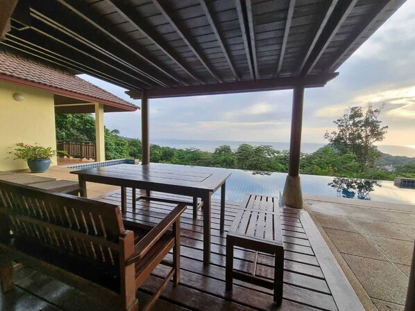 Outdoor dining - Private sea-view pool villa, 4 bedroom, 2 - 8 people, 5 min from the beach (Ko Lanta)