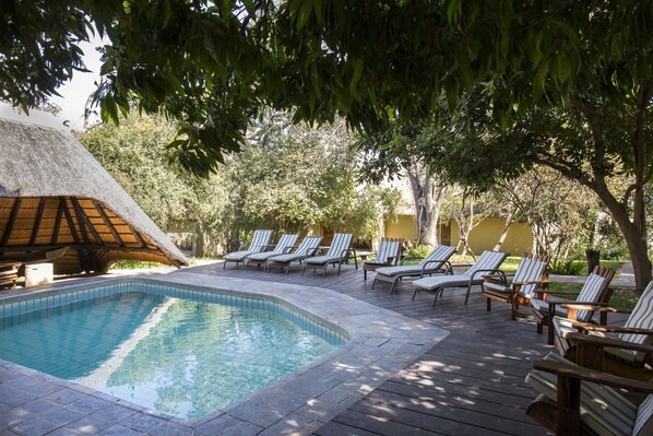 Namushasha River Lodge sits peacefully along the riverbank where wildlife viewing and safari excursions await. Travelers can enjoy meals at the restaurant after a day of exploration, sip drinks at the bar, or find a quiet moment in the garden.